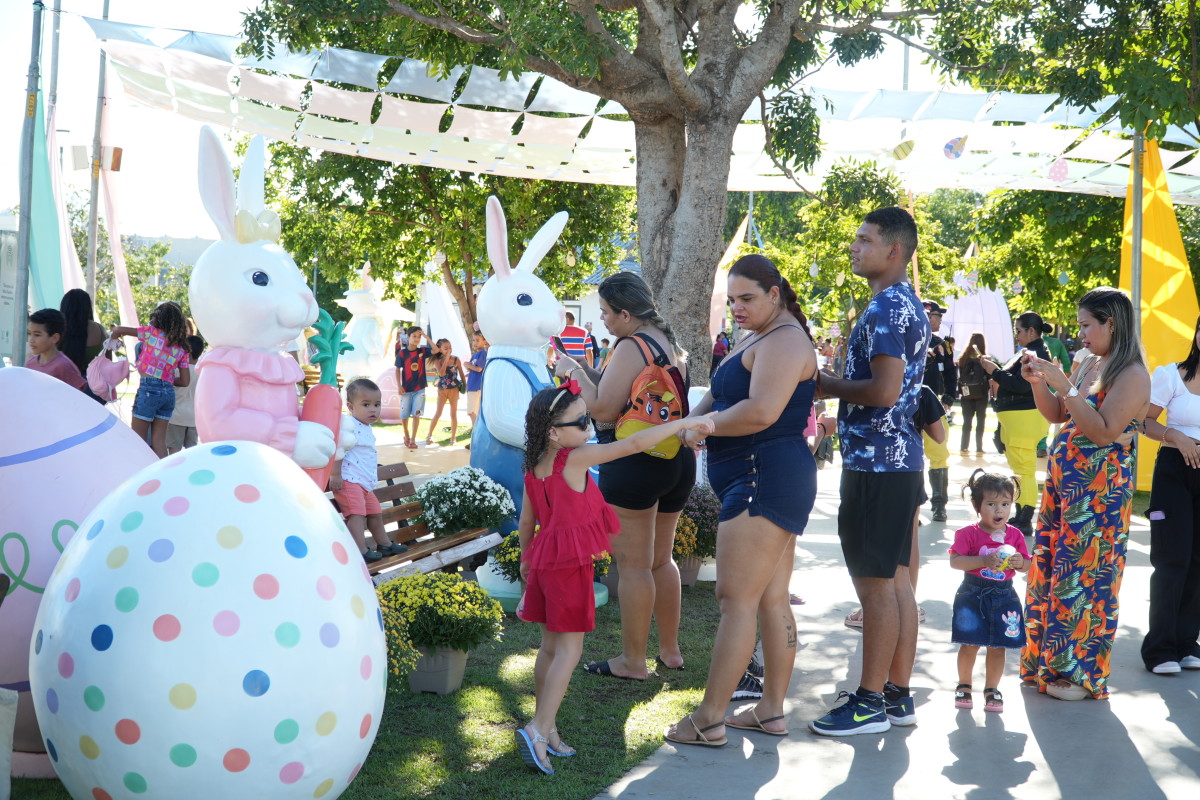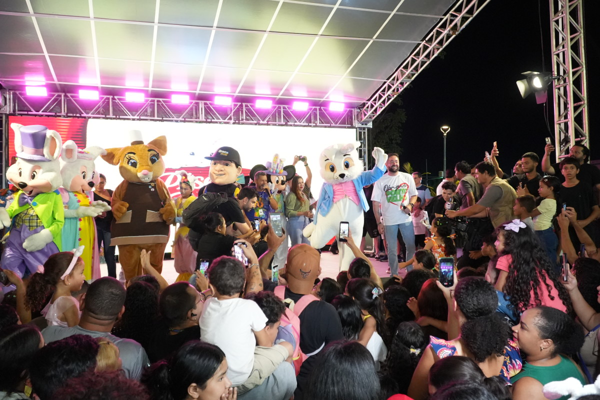 Stephany Souza chegou cedo, às três da tarde, e viu de perto a alegria dos filhosLogo na entrada, a decoração temática, os espaços interativos, apresentações culturais deram o tom de uma celebração pensada para acolher. Na última quinta-feira (02), aos poucos, o parque da cidade foi sendo tomado por risos, olhares curiosos e passos apressados de crianças encantadas com cada detalhe. Entre luzes, cores e personagens, o espaço se transformou em um cenário de afeto, onde famílias inteiras encontraram tempo juntas. A programação contou com caça aos ovos, sorteio de 25 bicicletas, além de apresentações culturais, como o teatro da Paixão de Cristo e diversas outras atividades.